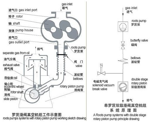 六、JZJH系列羅茨滑閥真空機(jī)組工作原理: |