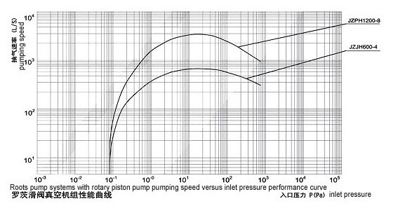 | 八、JZJH系列羅茨滑閥真空機(jī)組的性能曲線圖: |